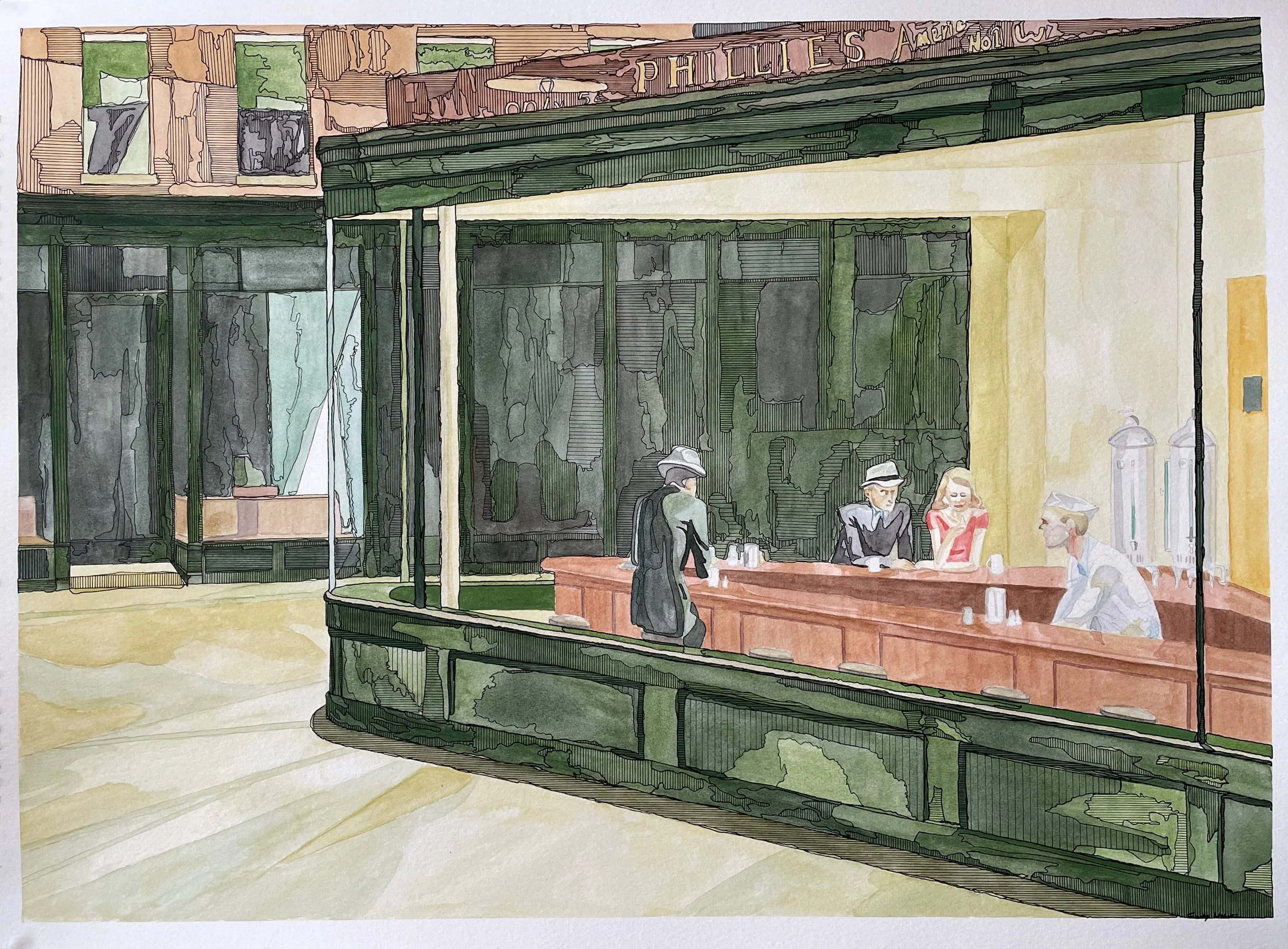 In college I found my love for the great American Painter Edward Hopper; from the way how he captures the architecture of New York, the composition of his paintings, as well as the play of light and shadow; he has stolen my heart as an artist.